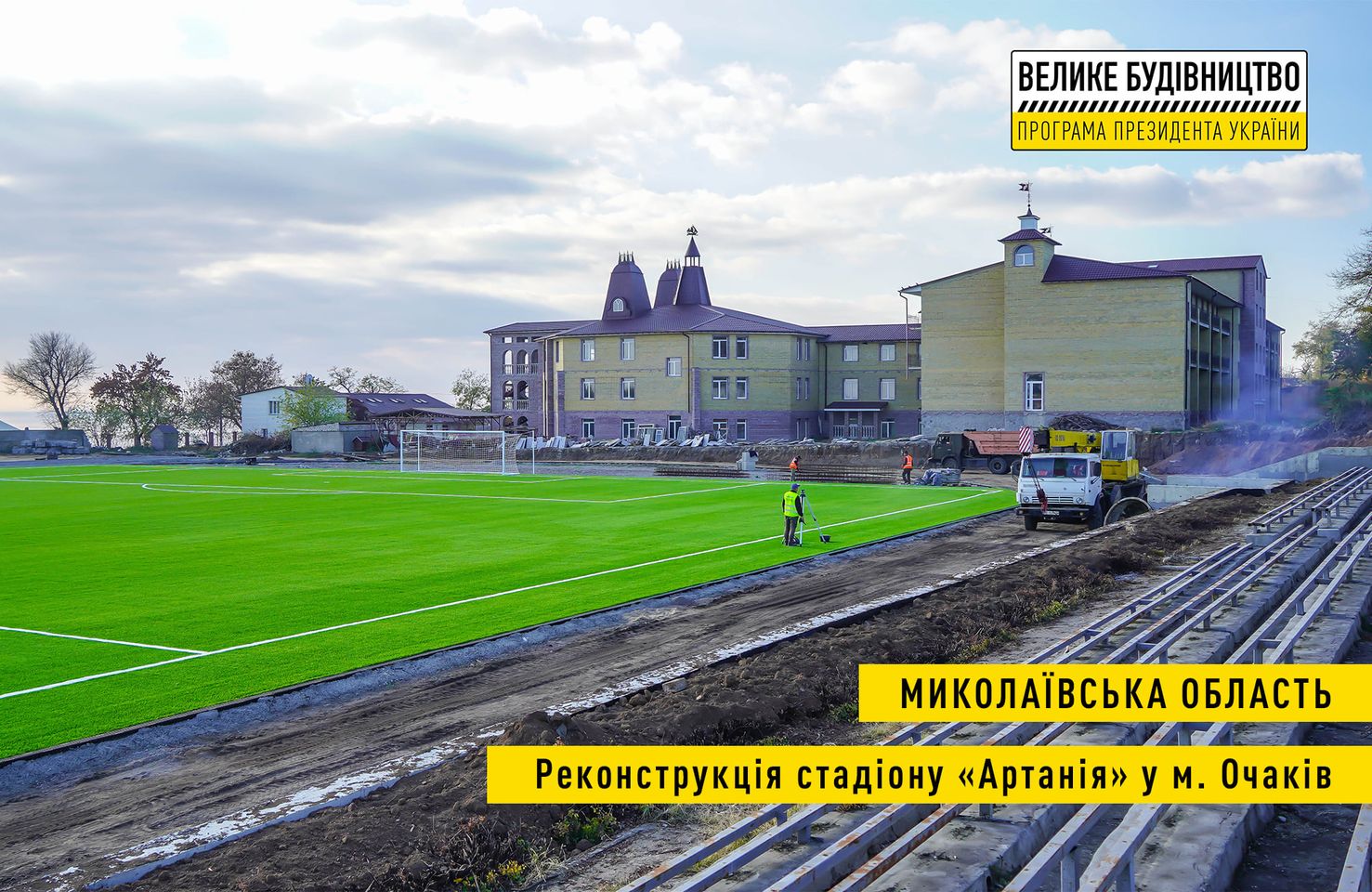 У рамках реалізації програми Президента України Володимира Зеленського «Велике Будівництво» в Очакові на Миколаївщині продовжуються роботи на стадіоні «Артанія».