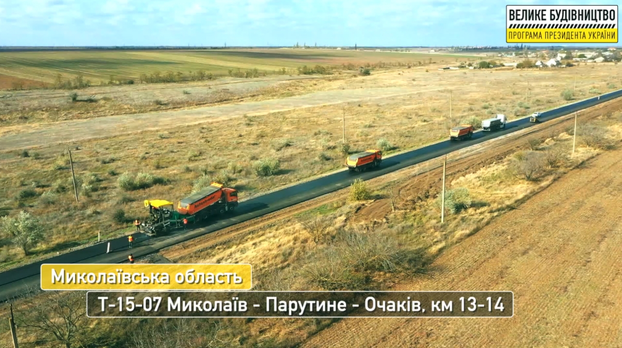 Завдяки реалізації програми Президента України Володимира Зеленського «Велике будівництво» в активній фазі триває ремонт траси Т-15-07 Миколаїв-Парутине-Очаків-база відпочинку «Чорноморка» на 13-14 км.