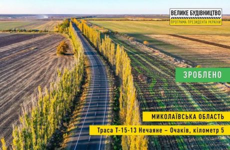 Автомобільну дорогу Т-15-13, яка з’єднує міста Миколаїв й Одесу з морським портом «Очаків» та курортною зоною «Чорноморка», повністю відновлено завдяки «Великому будівництву».