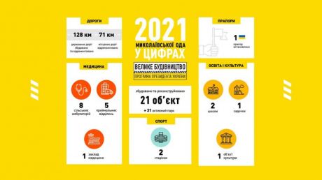 У Миколаївській області у рамках програми Президента України Володимира Зеленського «Велике Будівництво» у 2021 році було побудовано та реконструйовано 21 об’єкт.