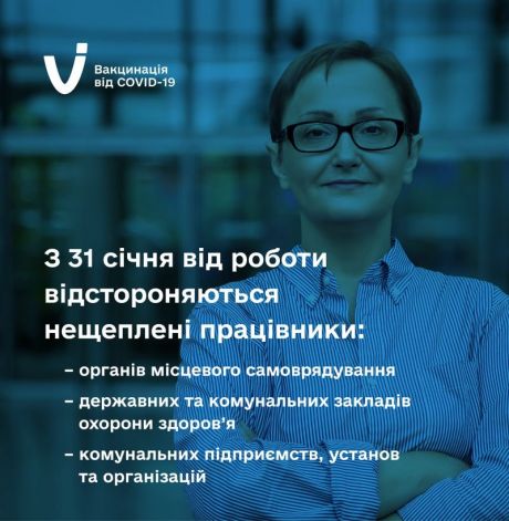 Сьогодні, 31 січня, набирає чинності наказ про відсторонення від роботи нових категорій працівників, які не зробили обов’язкове для них щеплення від COVID-19.