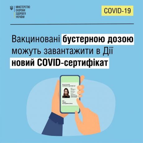 Відсьогодні усі, хто отримав бустерну дозу щеплення від COVID-19, можуть завантажити новий COVID-сертифікат.