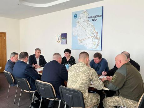 Командир окремого батальйону ТрО Сергій Сухацький, начальник штабу ТрО Василь Софієнко, заступник голови Миколаївської райради Андрій Добровольський заступники Олексій Допіра , Ганна Трегуб, Максим Кашуба та працівники райдержадміністрації обговорили завдання, поставлені дорученням голови Миколаївської ОДА Віталія Кіма від 14 лютого.