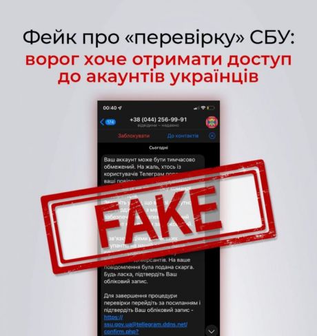 У Telegram та інших месенжерах розповсюджують фейк від імені Служб безпеки України. Нібито СБУ вимагає від українців перейти за посиланням аби "пройти перевірку". Це посилання, схоже на адресу сайту СБУ, але воно фейкове і не веде на онлайнресурс Служби!
