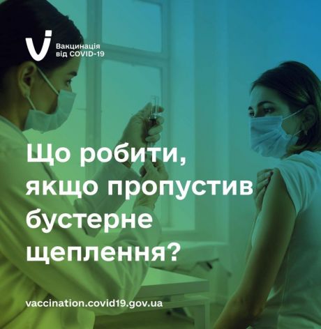 Якщо ви пропустили бустерне щеплення проти COVID-19, то просто запишіться в найближчий пункт чи центр вакцинації та отримайте пропущене щеплення. Це подовжить ваш захист від важкого перебігу коронавірусної хвороби.