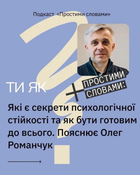 Вийшов 3 епізод подкасту «Простими словами». У ньому засновник центру «Коло сім'ї», лікар-психотерапевт Олег Романчук поділився поглядом на теми стійкості під час війни, лікування ПТСР, корисного мислення та книжок як психотерапії.