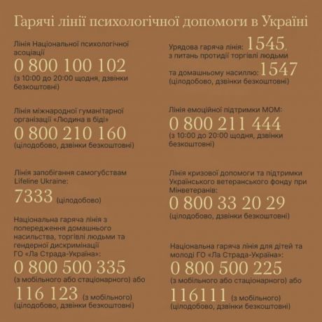 Зазначимо, що гарячі лінії діють за підтримки Всеукраїнської програми ментального здоров’я «Ти як?» створеної за ініціативою першої леді Олена Зеленська.