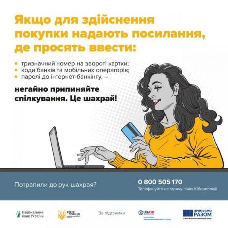 - Пам’ятайте! Шахраї дуже активно поширюють фішинг як купівлю/продаж різних товарів, послуг.