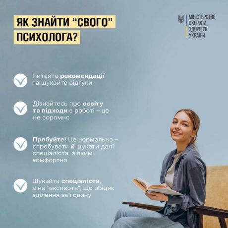 Знайти спеціаліста, якому ви довіритесь і зможете відкритись – задача не з легких. Міністерство охорони здоров'я України підготувало для вас алгоритм, який допоможе зорієнтуватись та обрати психолога, з яким робота буде ефективною.