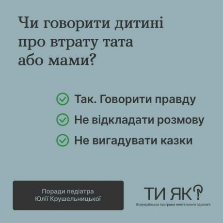 Що робити з малечею? Придумати казку та запевняти, що з татом або мамою все гаразд? Приховувати загибель якнайдовше? Розказати, коли дитина вже звикне, що рідної людини поруч немає?