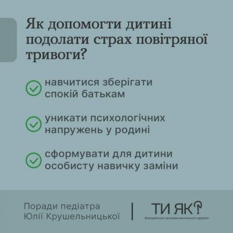 Як допомогти малечі подолати страх повітряної тривоги, розповідає в прямому ефірі, присвяченому реакціям дитячої психіки під час війни, педіатр Юлія Крушельницька. Переглянути ефір можна тут: https://www.youtube.com/watch?v=arm15tihywU.