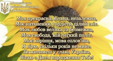 Сьогодні ми, як ніколи, розуміємо, що це не просто день народження держави. Це свято пам’яті про цілі покоління українців, які боролися за утвердження Української Нації. Так само розуміємо і те, що лише завдяки нашій щирій і постійній підтримці одне одного, завдяки згуртованості ми обов’язково здолаємо ворога. Наша сила та міць у єднанні, а спільна боротьба буде нашою спільною перемогою!
