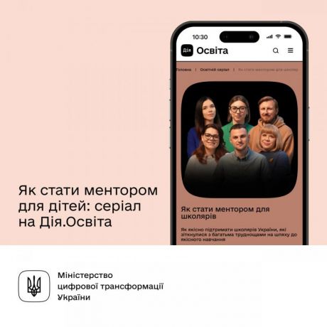 Будьте взірцем у сфері освіти — дивіться освітній серіал «Як стати ментором для школярів?» та допомагайте українським дітям самореалізуватися та мотивуйте їх у навчанні. Серіал доступний для перегляду за посиланням :https://osvita.diia.gov.ua/.../how-to-become-a-mentor-for...