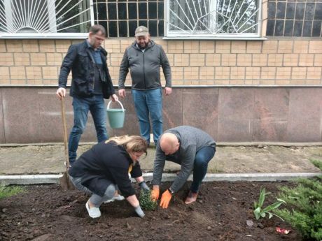 Прибрали внутрішню та прилеглу територію, обіччя пішохідних доріжок, упорядкували зелені зони, побілили дерева, висадили нові саджанці декоративних ялинок, кущів та посіяли квіти.