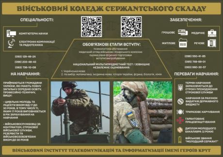 Відповідно до умов вступу до Військового коледжу сержантського складу ВТП (м. Полтатва) у 2024 році, вступ на навчання цивільної молоді здійснюється у формі національного мультипреметного тексту або або лише вступних іспитів безпосердньо в коледжі, що дає змогу отримати освіту більшій кількості молоді. Юнаки та дівчата безкоштовно отрмають цивільну спеціальнісмть за освітньо -професійним ступенем фахової передвищої освіти «фаховий молодший бакалавр», освітньо – професійними програмами (спеціальностями) «Компютерні науки», «Електронні комунікації та радіотехніка»