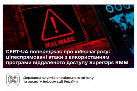 CERT-UA попереджає про діяльність кіберзловмисників, які використовують легітимну програму для віддаленого управління комп'ютерами SuperOps RMM з метою отримання несанкціонованого доступу до інформаційних систем українських організацій.