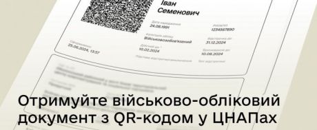 Від 25 червня українці після уточнення облікових даних у ЦНАПі зможуть отримати військово-обліковий документ із QR-кодом — за ним перевірятимуть дійсність документа. Безоплатно, без черг та відвідування територіальних центрів комплектування. Документ сформується, якщо в Єдиному державному реєстрі призовників, військовозобов’язаних та резервістів є вся необхідна інформація про заявника.