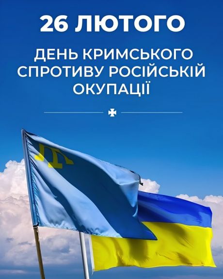 26 лютого Україна відзначає День спротиву окупації Автономної Республіки Крим та міста Севастополя. Ця дата символізує боротьбу українців та кримських татар за територіальну цілісність України, яка розпочалася ще у 2014 році.