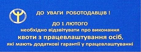 Відповідно до ч. 2 ст. 14 Закону України «Про зайнятість населення» встановлюється квота: