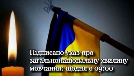 Указом президента України Володимира Зеленського № 143/2022 від сьогодні започатковано загальнонаціональну хвилину мовчання за співвітчизниками, загиблими внаслідок збройної агресії російської федерації проти України щоденно о 9 годині 00 хвилин.