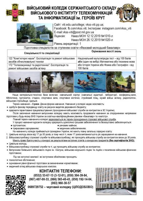 Сайт: viti.edu.ua/college; vkss-viti.pp.ua;