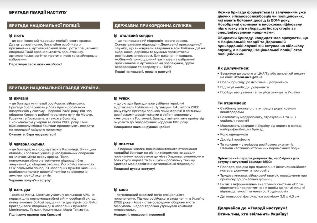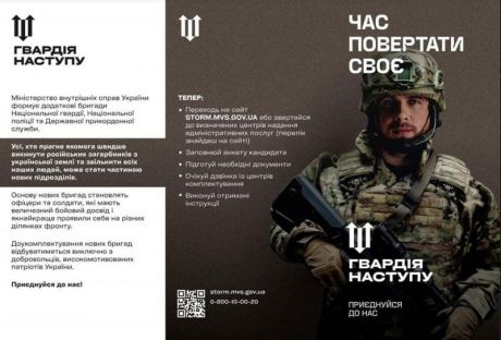 МВС України, Національна гвардія, Національна поліція та Державна прикордонна служба закликають усіх українців, хто прагне якомога швидше викинути російських загарбників з української землі та звільнити усіх наших людей, вступати до лав нових підрозділів.