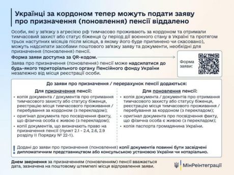 Відтепер українці за кордоном можуть подати заяву на призначення або поновлення пенсії віддалено