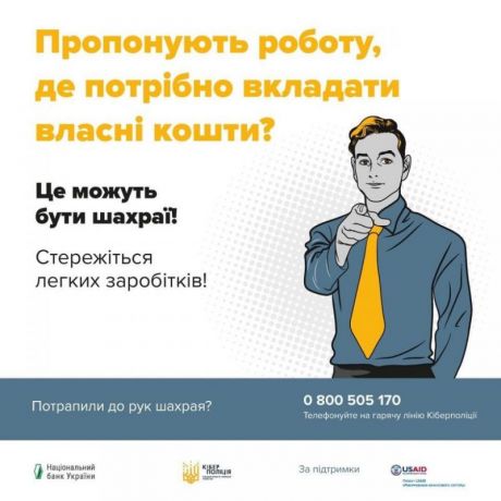 - не вкладайте власні гроші за роботу в інтернеті. У більшості випадків це пропозиції від шахраїв;