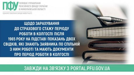 Щодо зарахування до страхового стажу періоду роботи в колгоспі після 1965 року на підставі показань двох свідків, які знають заявника по спільній з ним роботі та мають документи про період роботи в колгоспі