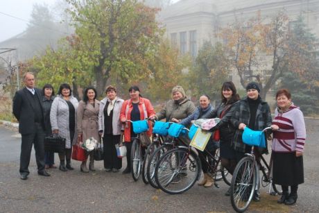 5 листопада соціальним робітникам відділення соціальної допомоги вдома територіального центру соціального бслуговування (надання соціальних послуг) Миколаївського району було урочисто вручено нові велисопеди, халати і гумові чоботи, які придбано за кошти отриманні від надання платних соціальних послуг.