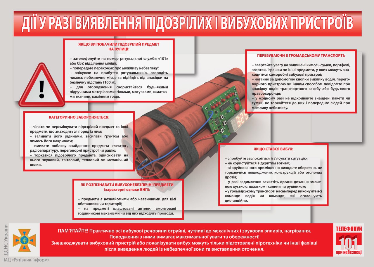 Дії у разі виявлення підозрілих і вибухових пристроїв