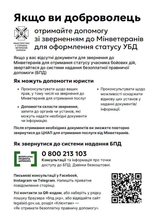 ІНСТРУКТИВНО-МЕТОДИЧНІ РЕКОМЕНДАЦІЇ щодо реалізації експериментального проекту щодо запровадження інституту помічника ветерана в системі переходу від військової служби до цивільного життя Формат: DOCX | Добавлен: 11/07/2023 16:18:25 |