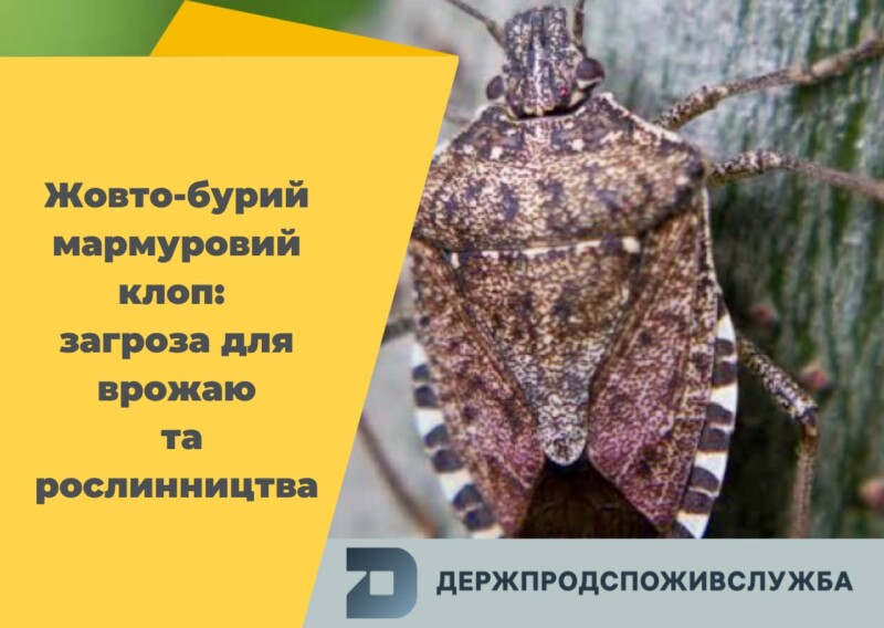 Жовто-бурий мармуровий клоп — новий для України шкідник. Комаха має азійське походження й нині поширена в США та Європі. В Україні його вперше виявили у 2023 році — у Запорізькій та Дніпропетровській областях.