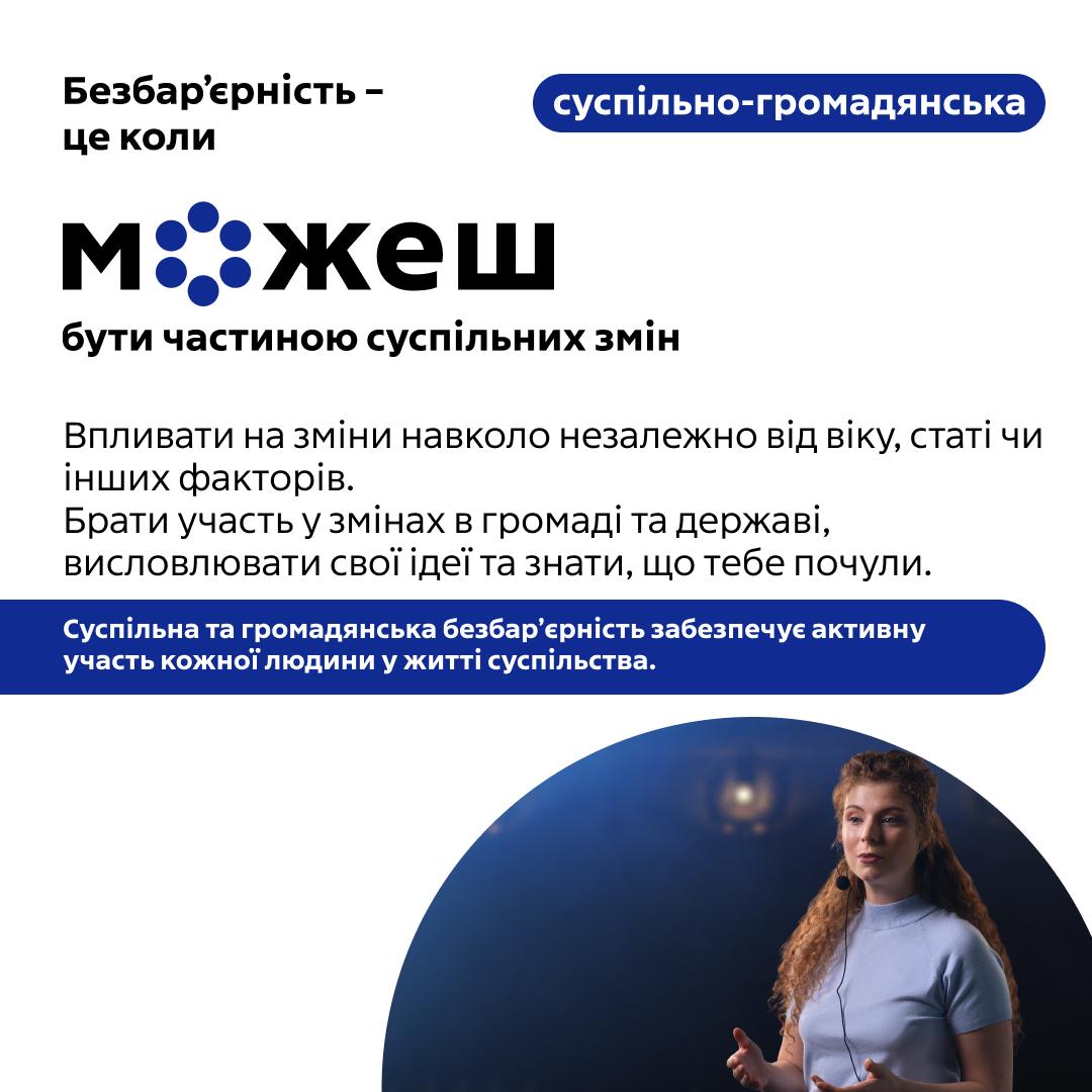 Безбар’єрність – це про гідність і можливості, доступні кожному й кожній. Це коли всі відчувають, що їх чують і що вони є частиною суспільства.