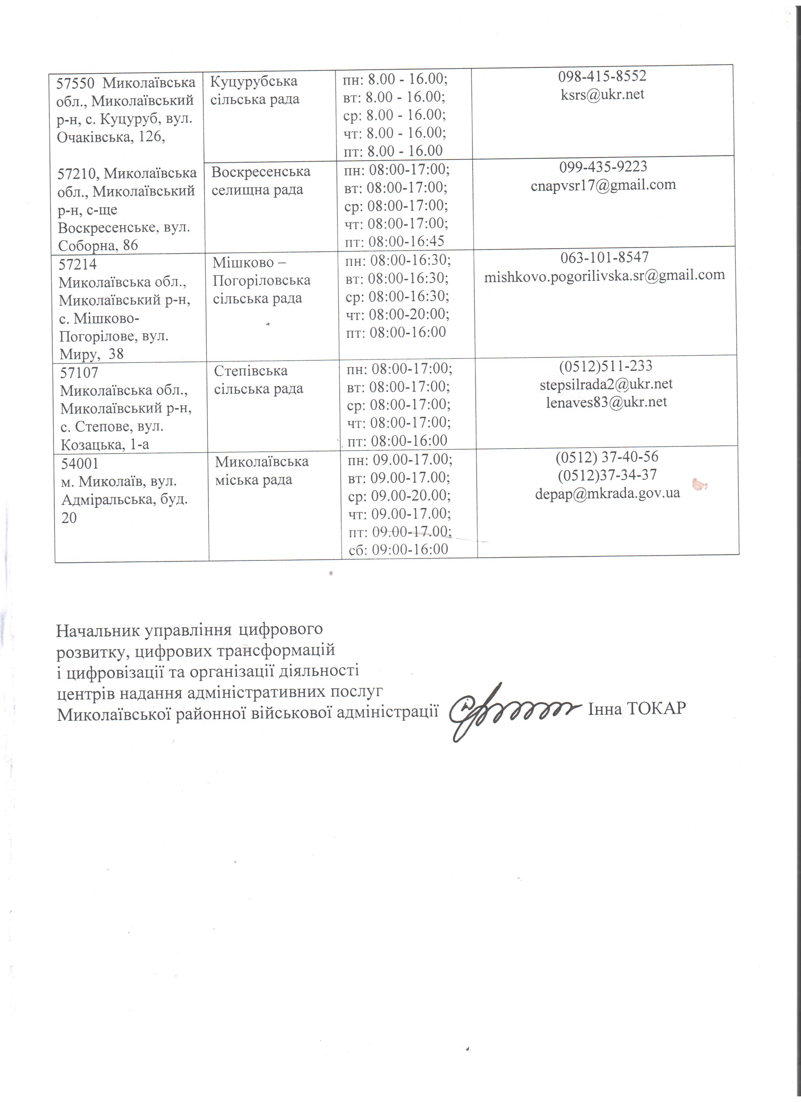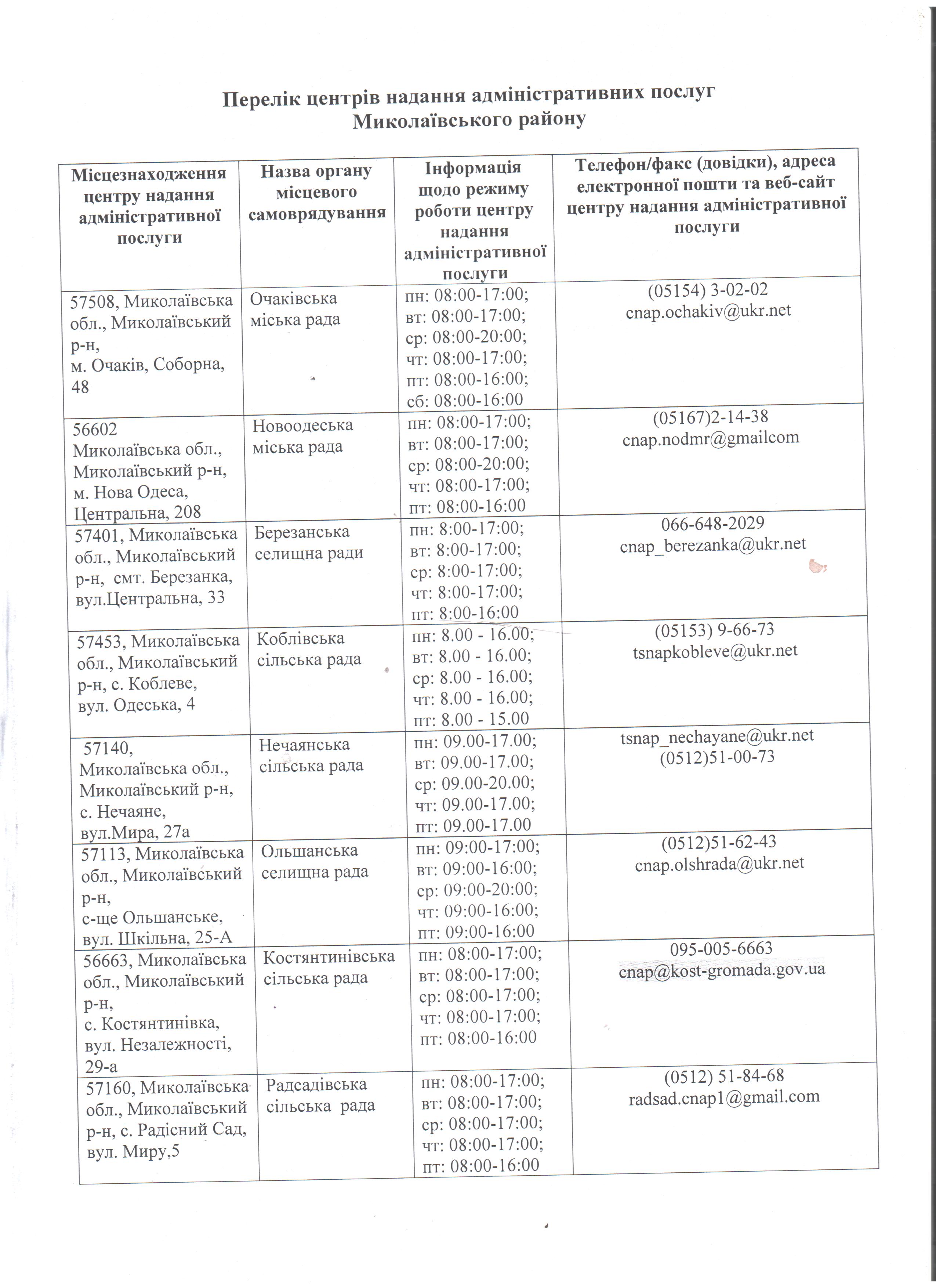Посилання на сторінки ЦНАПів Миколаївського району