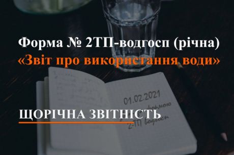 Обов’язкове подання звітності про використання води за формою 2ТП-ВОДГОСП (річна) «Звіт про використання води» до 01 лютого 2022року