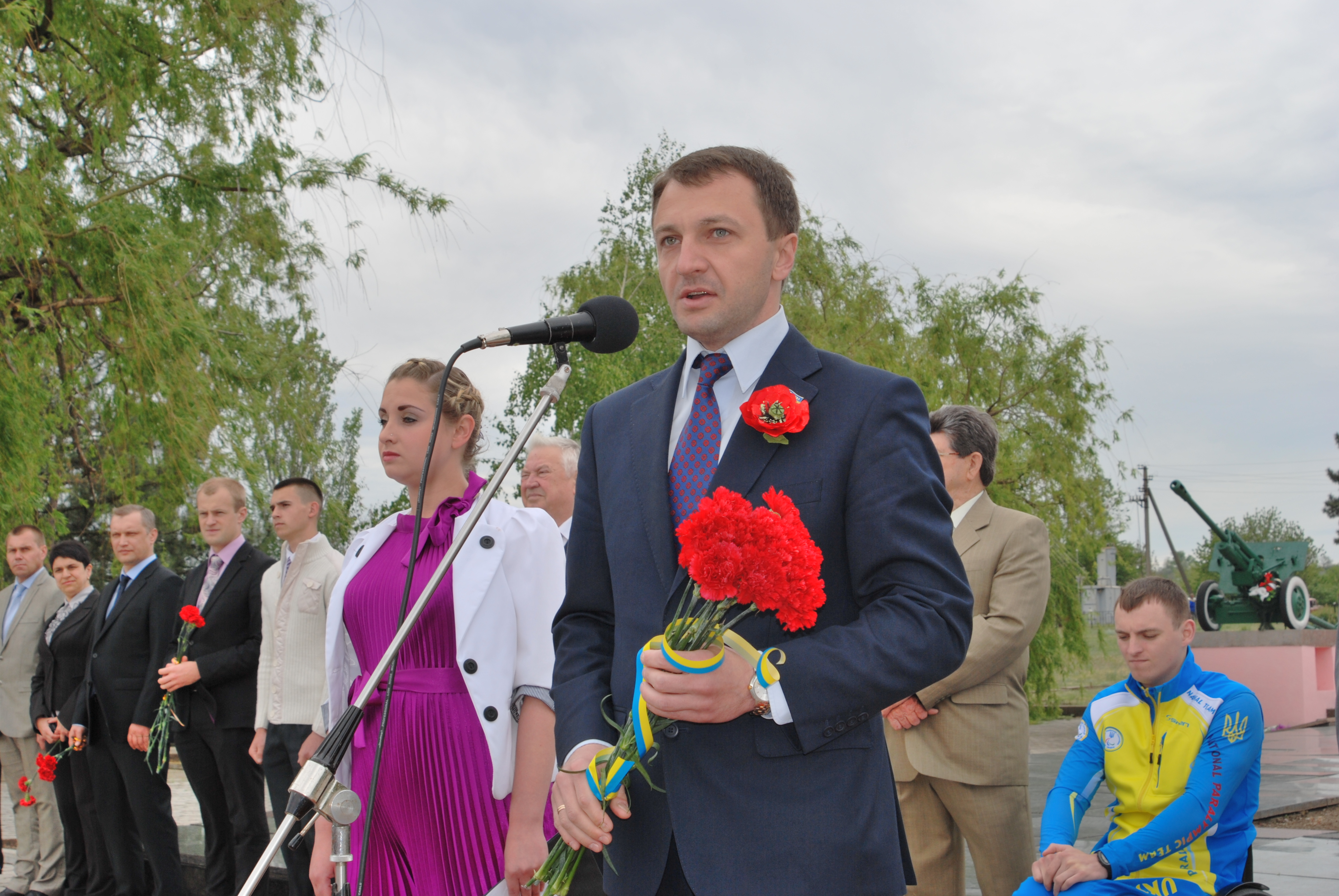 До присутніх звернувся голова Миколаївської обласної ради Тарас Кремінь із привітаннями та словами вдячності усім, хто наближав цей день у далекому 1945 році, хто доклав неймовірних зусиль у боротьбу з «коричневою чумою», хто є творцем такого неоціненного, але крихкого миру. Доречними були побажання мирного неба та злагоди нашій країні, а також прохання до молодого покоління не забувати та шанувати воїнів-визволителів. Він також передав найкращі побажання від народних депутатів України Вадима Мерикова та Ігоря Бриченка.