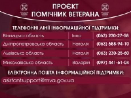 Активно працюють канали інформаційної підтримки процесу набору помічників ветеранів. На ваші запитання очікують телефонні лінії інформаційної підтримки проєкту: