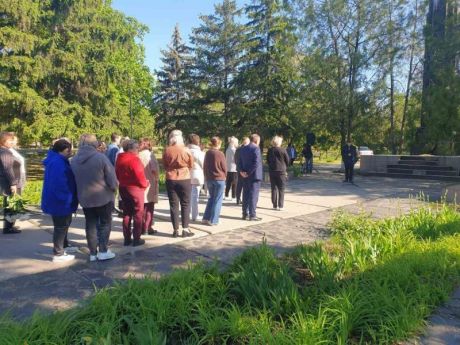 Присутні вшанували пам’ять загиблих у Другій світовій війні хвилиною мовчання та поклали квіти до пам'ятних знаків.