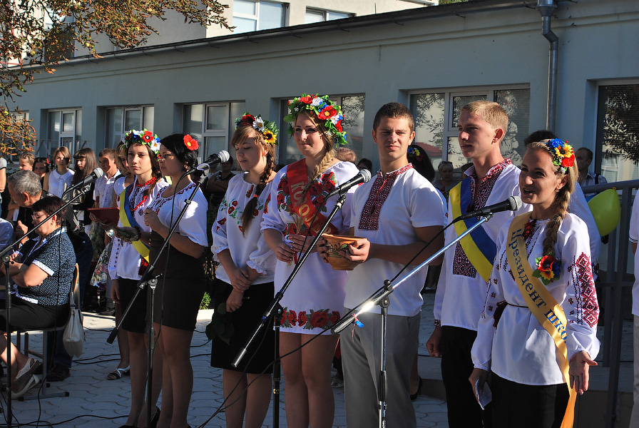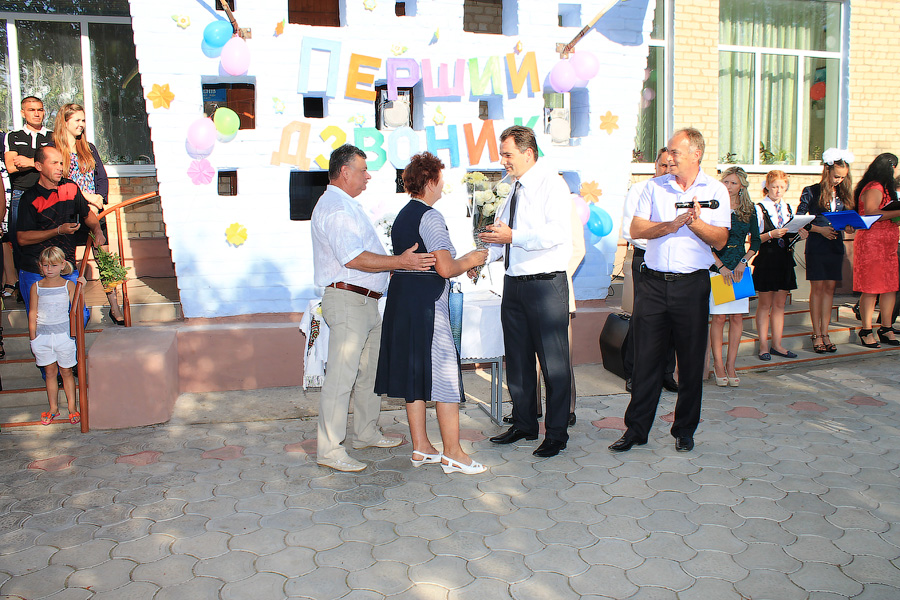 Дорогі діти, батьки, шановні освітяни! Щиро вітаємо всіх вас із традиційним вересневим святом першого дзвоника – Днем знань, який відкриває світ пізнання та сходження до одвічних життєдайних джерел цивілізації. День знань став по-справжньому всенародним святом молодості і надій. Це свято насамперед тих, хто вперше у житті переступає поріг школи. Тих, хто прийшов сюди зі своїми дітьми чи онуками. Тих, хто щоденно віддає їм свої знання та тепло сердець, навчає і виховує в дусі любові до України та до людини як найбільшої гуманітарної цінності. Так було й так буде — осінь завжди починатиметься з цього трохи щемливого шкільного свята.
