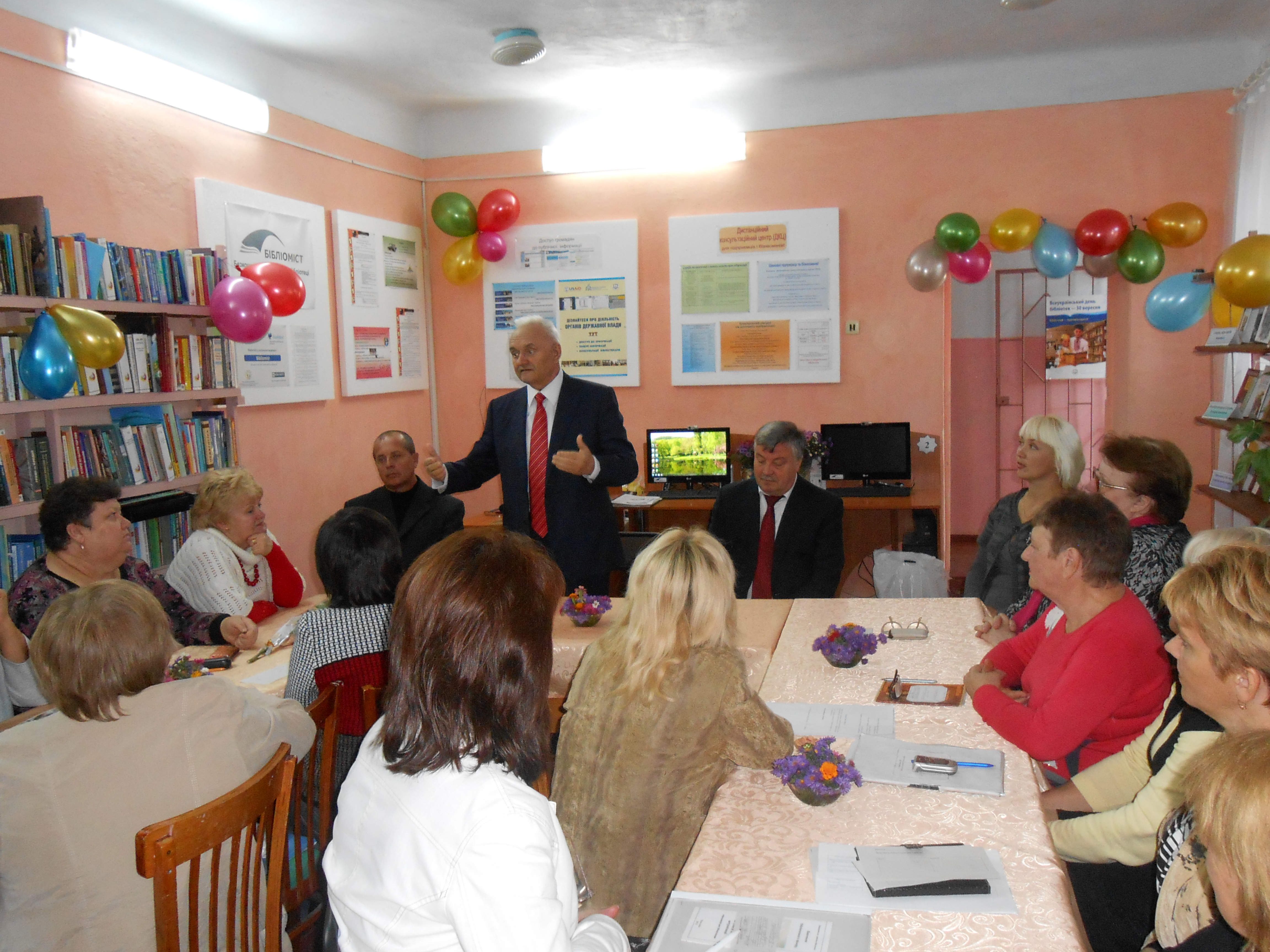Поздоровити бібліотекарів району завітали Дімітров Михайло Федорович, довірена особа кандидата в народні депутати ВР по 127 виборчому округу Б.Ю.Козиря, Козир Юрій Борисович, ветеран праці, Заслужений працівник соціальної сфери України, Заслужений громадянин Миколаївського району і депутат районної ради Григор’єв Сергій Михайлович. Бібліотекарі почули багато теплих слів в свою адресу, а також подарунки: передплату періодичних видань на 2015 рік на суму 5 тис.грн., кошти на переобладнання електролічильника, та святкові подарунки. Бібліотекарі були вдячні за увагу і підтримку.