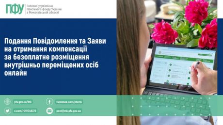 В Пенсійному фонді України реалізовано новий електронний сервіс, який дозволяє дистанційно звернутись за призначенням компенсації витрат за безоплатне розміщення внутрішньо переміщених осіб (далі – ВПО) з відповідним повідомленням та заявою через вебпортал Пенсійного фонду України (далі – ПФУ).