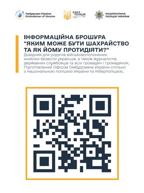 У межах інформаційної кампанії Офісу Омбудсмана України спільно з Національною поліцією України та Кіберполіцією створена інформаційна брошура «Яким може бути шахрайство та як йому протидіяти?»