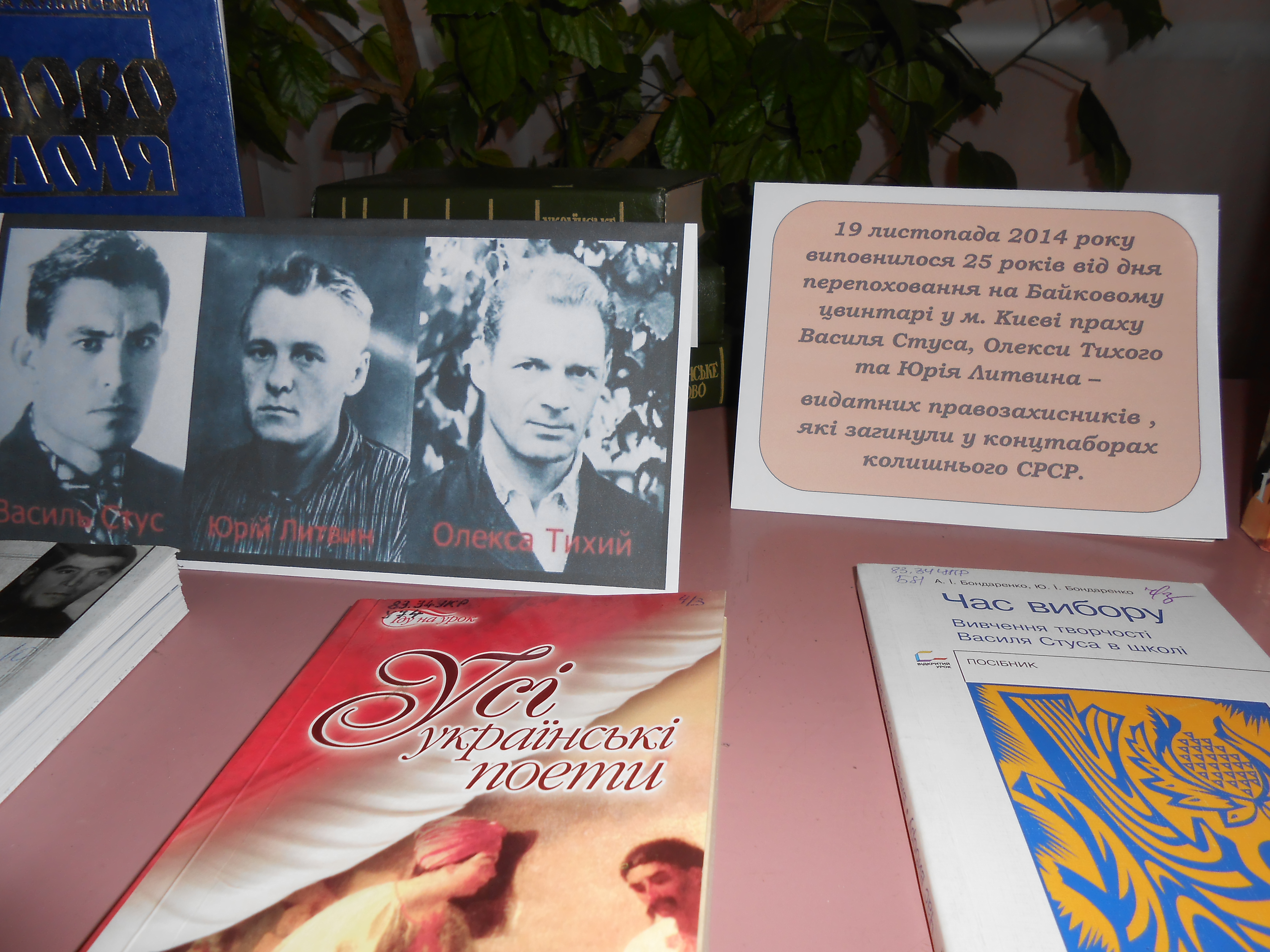 Наприкінці листопада 2014 року виповнилося 25 років від дня перепоховання на Байковому цвинтарі у м.Києві праху Василя Стуса, Олекси Тихого, Юрія Литвина, які загинули у концтаборах, відстоюючи громадянську думку українського народу.