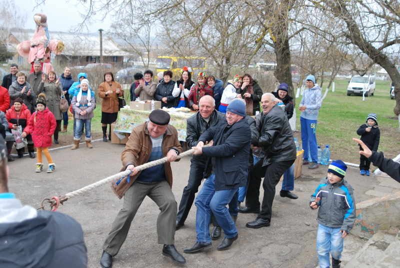 Наприклад, у Великобританії влаштовують змагання з бігу жінок із млинцями на сковорідках, а у нас - з’їж млинець і покажи на що здатен! Чоловіки демонстрували силу у піднятті гирі, діти демонстрували вправність у різних конкурсах «на швидкість» та просто веселилися. Не стояли осторонь і сільські голови. Встигли виграти у конкурсі із перетягування канату, де мали гідних суперників - представників Нечаянської сільської ради. Жінки та дівчата, як й годиться, були окрасою свята - співали й пригощали млинцями. Гарними пісенними композиціями привітали усіх чарівні жінки, тезки, імена яких у перекладі з давногрецької означають такі бажані для усіх мир, спокій, Ірина Пирог-Кравчук та секретар Нечаянської сільської ради Ірина Сопільняк.