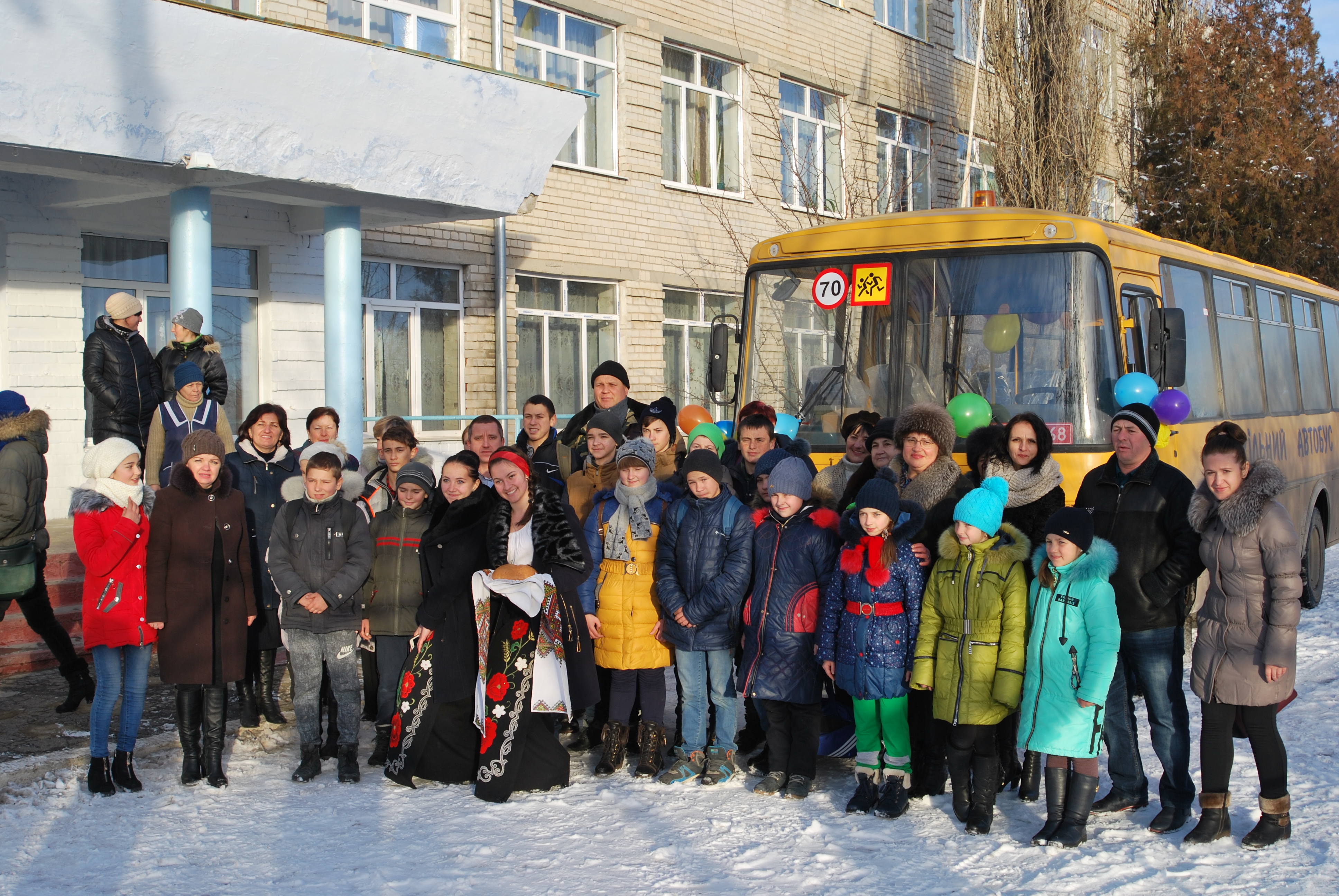 Хлібом-сіллю, зі словами вдячності та теплих побажань зустрічали Миколу Миколайовича старшокласники. Саме він разом із учнями перерізав символічну стрічку на дверях автобуса.