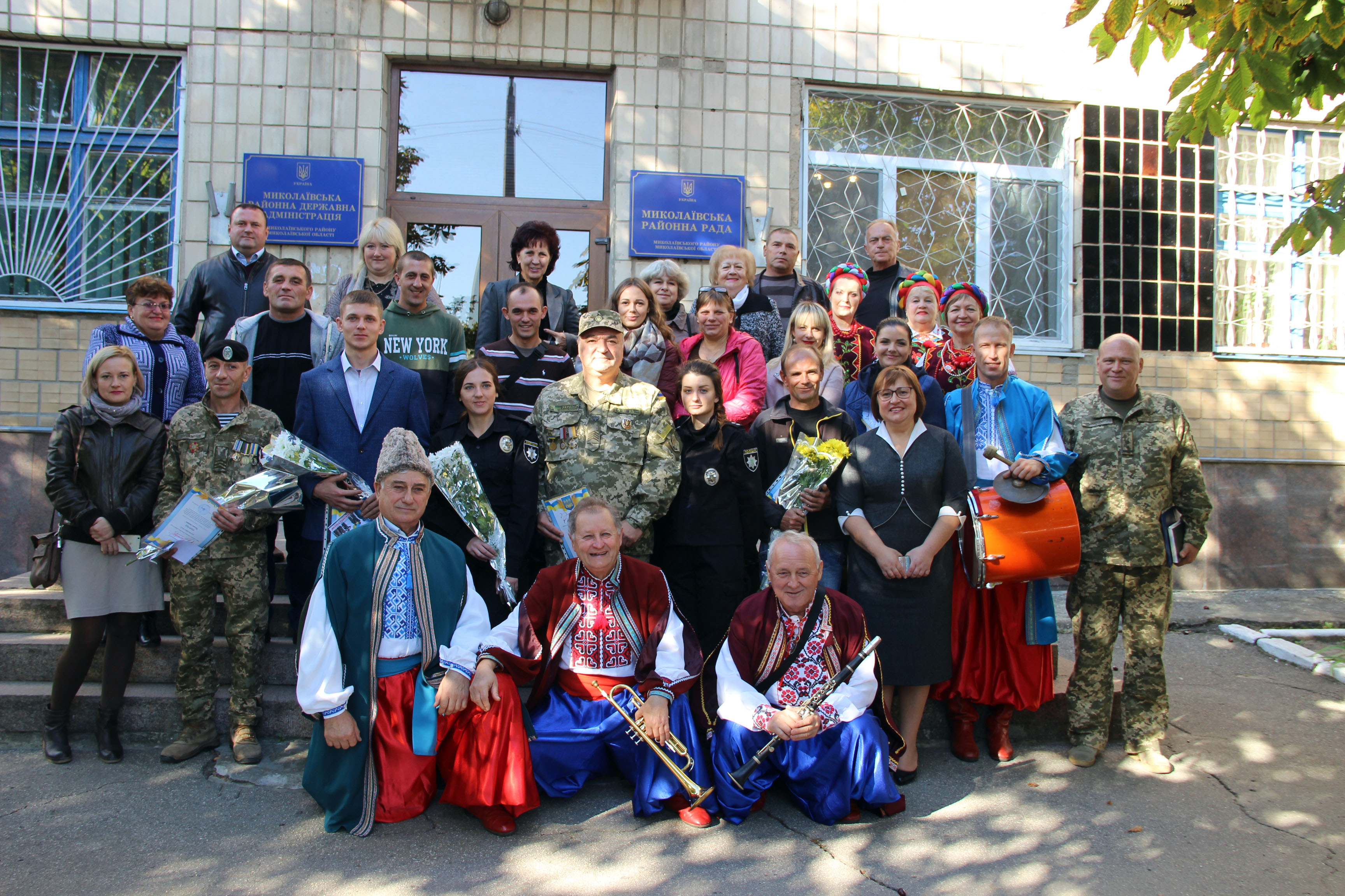 12 жовтня о 9-00 в актовій залі Миколаївської районної ради відбувся урочистий захід, присвячений Дню Захисника України. Це свято увібрало в себе багаті і славні ратні традиції, уособлює мужність і героїзм оборонців та визволителів рідної землі на всіх етапах її історії. Цього дня ми знову повертаємося пам’яттю і серцем до грізних і незабутніх сторінок минулого та сьогодення, щоб ще раз осягнути, кому зобов’язані мирним небом над головою, можливістю жити і ростити дітей та онуків. Нинішні нащадки хоробрих українських козаків із честю відстоюють нашу землю. Їх мужність та відвага наповнюють наші серця і душі гордістю та вірою. Захищаючи свою Батьківщину, вони показали незламність духу та патріотизм, якого ще не бачив світ.
