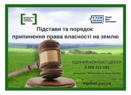 Підставами припинення права власності на землю є юридичні факти, з якими закон пов'язує припинення правовідносин земельної власності. Земельний кодекс України визначає юридичні факти, які ведуть до припинення права державної, комунальної та приватної власності на землю.