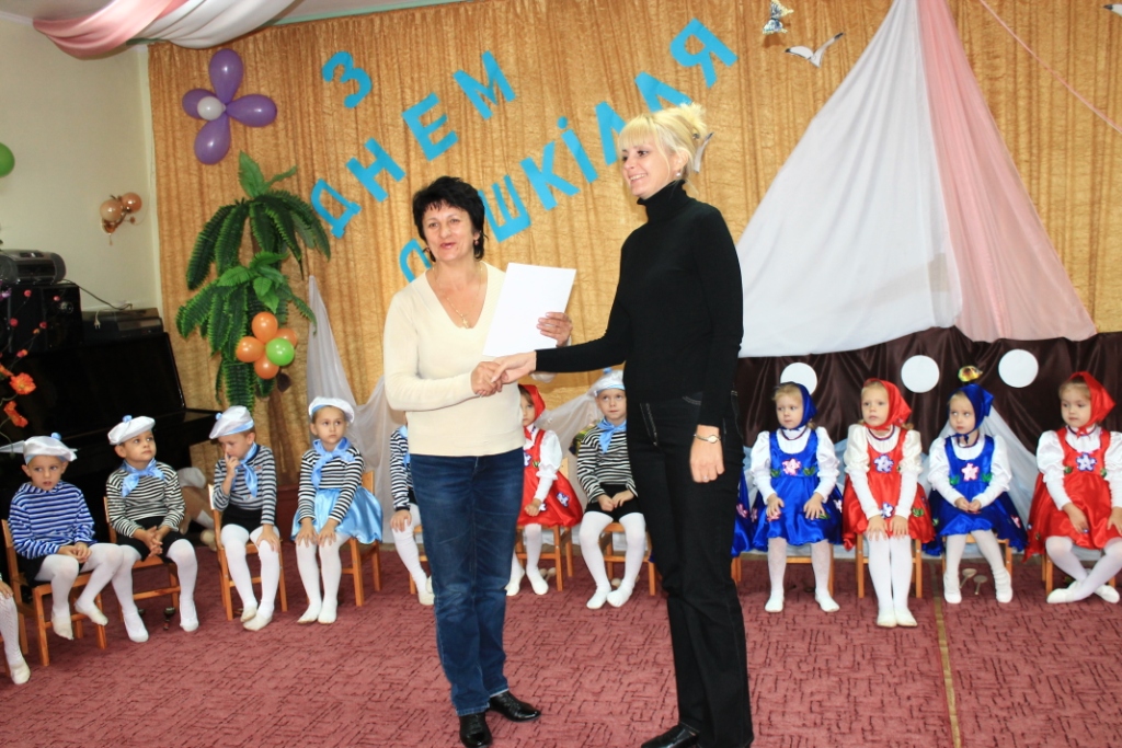 З метою виконання нових соціальних ініціатив Президента України «Діти – майбутнє України» 26 вересня 2013 року проведений урочистий захід, присвячений Дню вихователя і всіх дошкільних працівників (Веснянський ДНЗ). В заході взяли участь керівник апарату Миколаївської райдержадміністрації Орлова Л.Д., начальник відділу освіти Долованюк Л.О., сільський голова Семашко А.В. Зі словами привітання звернулася Орлова Л.Д. , яка звернула увагу на важливість забезпечення доступу кожної дитини до дошкільної освіти в рамках реалізації соціальних ініціатив Президента України за умови розширення мережі дошкільних закладів та 100% охоплення дітей дошкільною освітою.