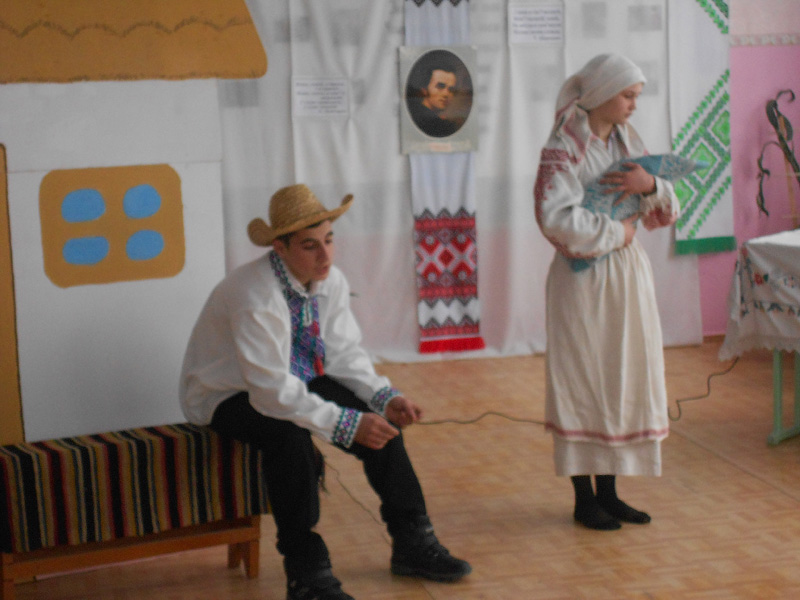 Життя Тараса від народження було сповнене то горя, то поезії.Як жилося Тарасу у дяка, продемонстрували члени гуртка « Поетичні струни» Шевченко О., Нестерук Д., Андрейченко С. фрагментом з п’єси В. Долини « Мені тринадцятий минало».